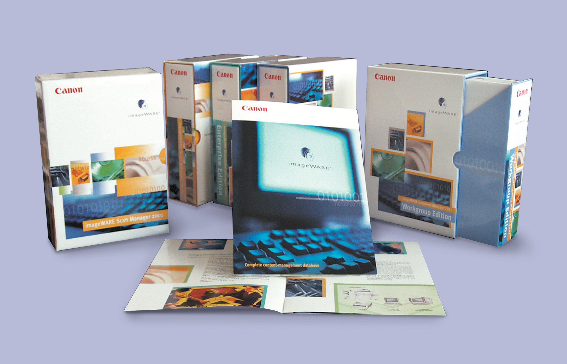 This was a design for a series of 4 software packages for Canon Copiers. It was a lot of fun working on the branding behind each box as they all had to relate to each other as a set. I was on-press for this one from 9PM-4AM because color and alignment of the designs was crucial.
